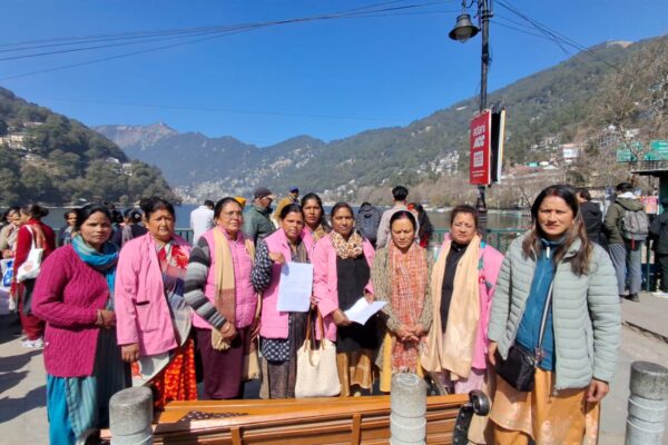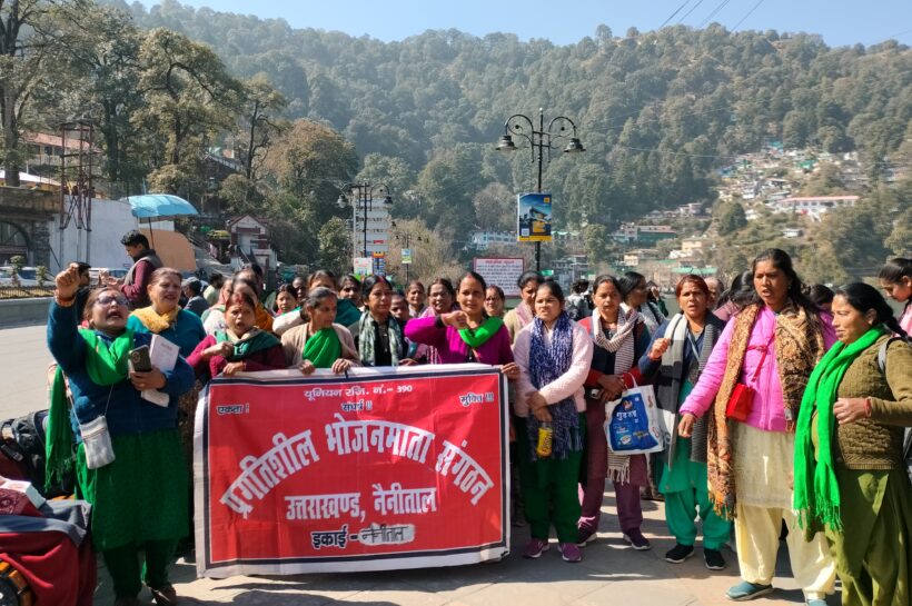 आशा वर्कर्स ने तल्लीताल डाट पर प्रदर्शन कर, डीएम को सौंपा ज्ञापन।