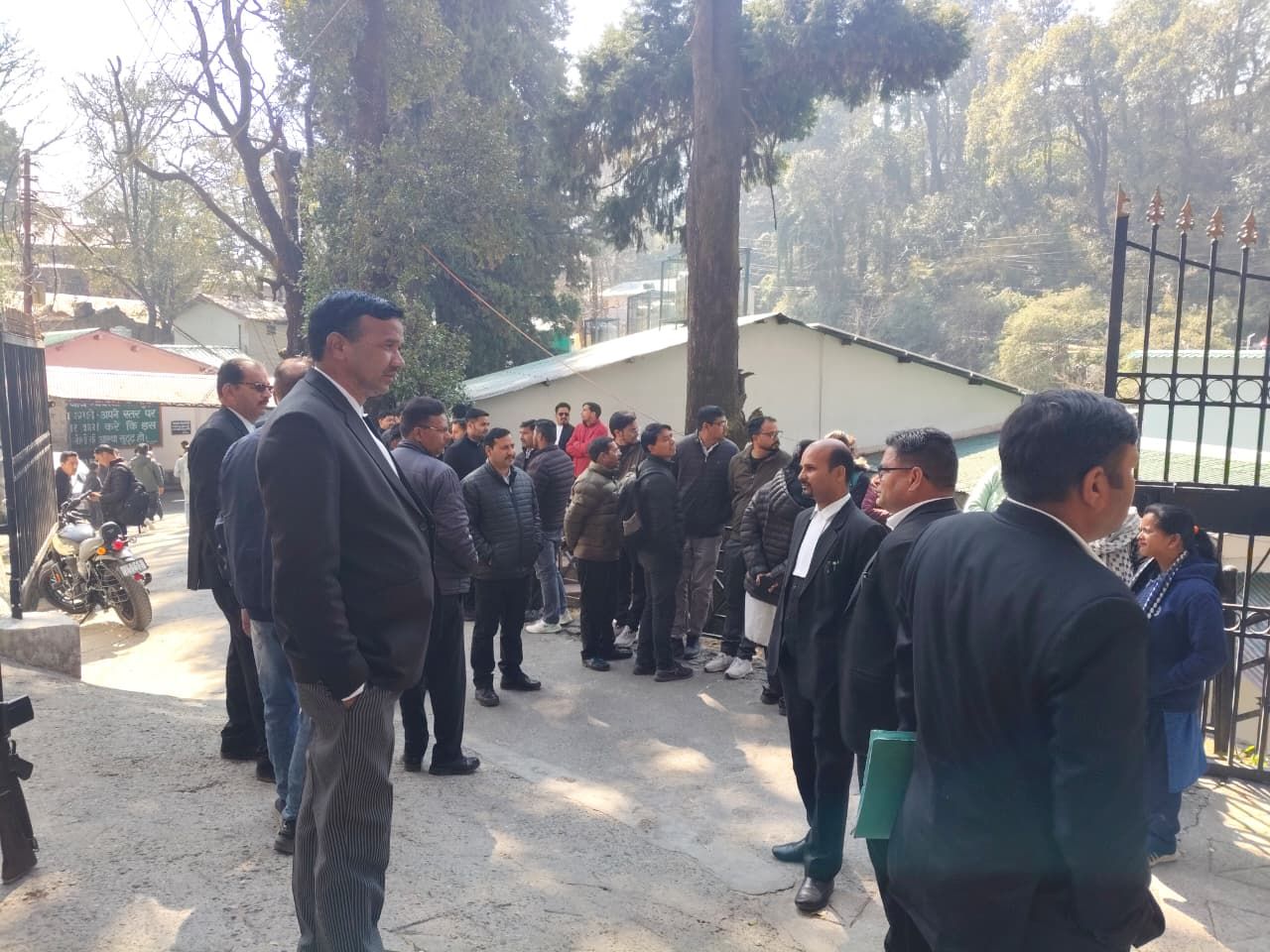 नैनीताल। शहर के जिला न्यायालय नैनीताल को बम से उड़ाने की धमकी मिलने के बाद सोमवार को न्यायालय परिसर में अफरा-तफरी मच गई। सूचना मिलते ही अधिवक्ता अपने-अपने चेंबर से बाहर निकल आए और पूरे परिसर में अफरा तफरी का माहौल देखने को मिला।